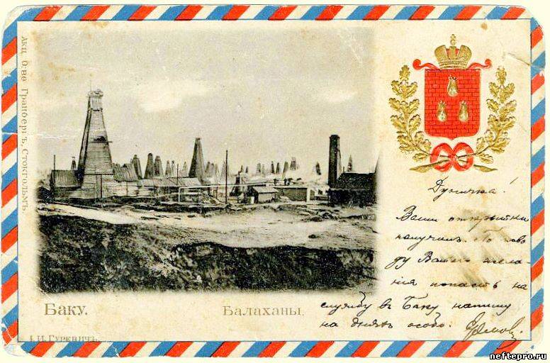 Деревянные вышки месторождения Балаханы в Баку. Открытки конца XIX – начала ХХ века.