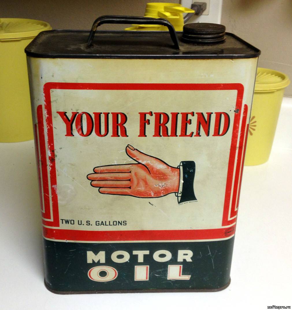 Каниста с моторным маслом объемом два американскх галлона, Ваш друг.