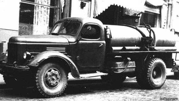 Они появились с самого начала распространения автомобиля. В царской России широко использовались бензоцистерны, смонтированные на американских грузовиках «Уайт». В 20-х бензоцистерны устанавливали на импортные, в основном немецкие, шасси — «Мерседес», «Бюссинг» и другие. Но постепенно цистерны перебираются на отечественные шасси: АМО-3, ГАЗ-АА и Я-3. Первым советским промышленным производителем автоцистерн для жидкого топлива стал Ленинградский завод «Промет». Его цистерны монтировались на шасси ЗИС-5, имели емкость 3000 л и могли использоваться как для транспортировки бензина к потребителям, так и керосина для продажи населению.Газифицированы были только крупные города, а большая часть населения пользовалась для приготовления пищи керосинками, отошедшими в историю лишь к 70-м. Да и «лампочка Ильича» имелась не везде, поэтому классическая керосиновая лампа была незаменима в темное время суток. Продажа керосина велась прямо из цистерны, его наливали в емкости и бидоны покупателей.Первая отечественная серийная автоцистерна состояла из железного резервуара с грязевиком, установленным на раме из продольных и поперечных брусьев, прикрепленных к раме автомобиля хомутами и связанной с шасси железными стяжками. Для работы цистерна имела специальную арматуру, состоящую из наливной горловины, снабженной предохранителем от взрыва паров бензина или керосина; фильтром-сеткой для очистки топлива, центрального вентиля; спускного трубопровода, также снабженного предохранительным клапаном. Кроме того, цистерна завода «Промет» снабжалась двумя запорными вентилями для спуска содержимого самотеком с резьбовыми переходами для навертывания удлинительных рукавов и поплавковым указателем для определения степени наполненности цистерны.Большинство цистерн «Промет» поставлялись потребителям с механическими насосами с приводом от двигателя автомобиля через специальный редуктор с карданным валом, соединявшим его с коробкой передач. Насос монтировался на специальной раме, прикрепленной к основной раме автомобиля. Однако на случай поломки двигателя или насоса цистерны по желанию заказчиков имели еще и ручной насос «Гард». В обязательное оборудование ленинградских бензоцистерн входили дополнительные приемные и раздаточные рукава, закрепленные скобами и замками на цистерне.Цистерны имели также противопожарные устройства и огнетушители, размещенные в легкодоступных местах, глушитель автомобиля переносили вперед и устанавливали под радиатором. Для гашения гидравлических ударов при движении неполной цистерны у нее внутри имелось несколько не доходящих до дна перегородок.По специальным заказам цистерны «Промет» могли иметь два отделения — для горючего большее, для масла меньшее. Для одновременной перевозки вместе с бензином смазочных материалов по обе стороны цистерны имелись специальные полки под 12 бидонов или канистр для масла и двух бидонов для смазки — тавота, солидола и т.д.Великая отечественная проблему снабжения самолетов, танков и другой военной техники высветила, что называется, «во весь рост». Началось срочное изготовление упрощенных автоцистерн для перевозки бензина и масла, снабжавшихся, в основном, ручными насосами и монтировавшихся на упрощенных шасси ГАЗ-ММ и ЗИС-5В. Подобные цистерны изготавливались оче